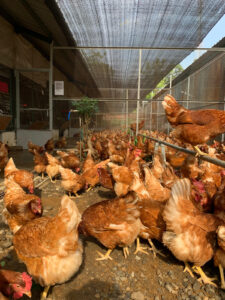 Part of its production operates under a free-range system, where hens have access to outdoor areas that allow them to move freely, perch, scratch, and express natural behaviors.